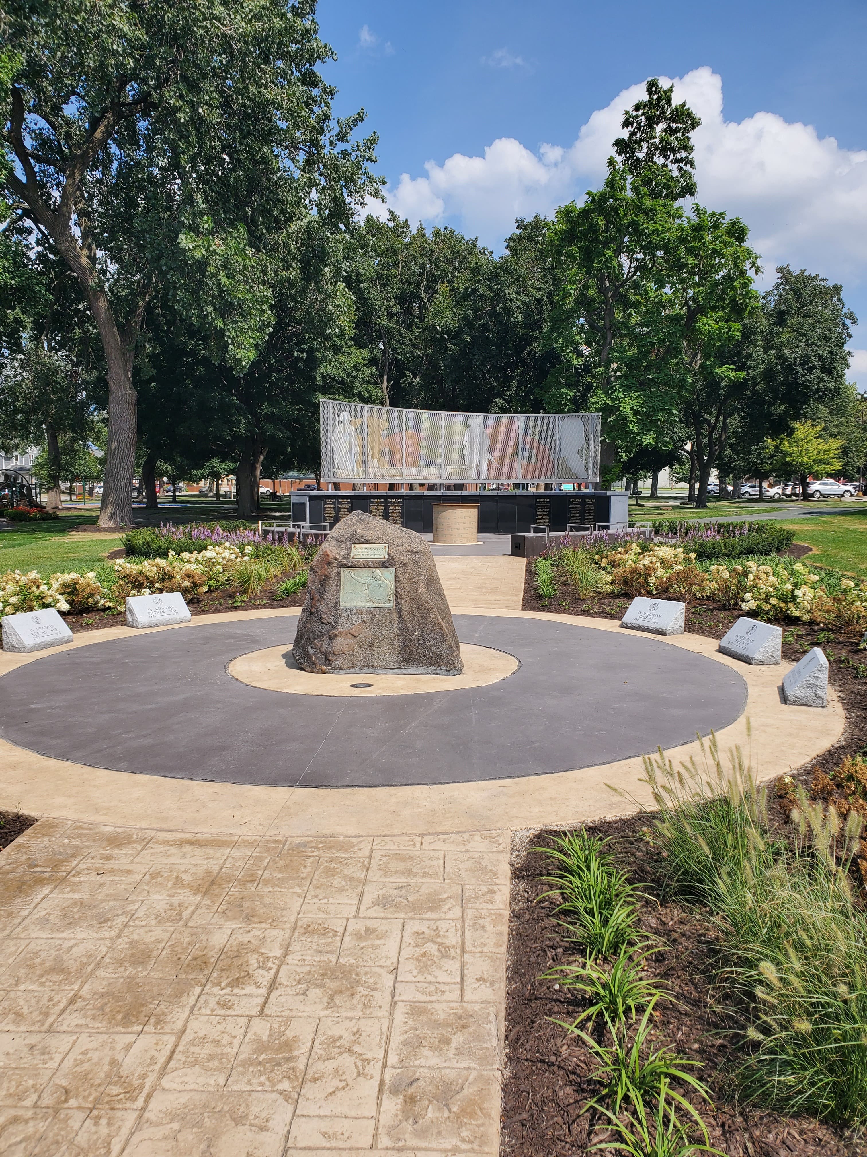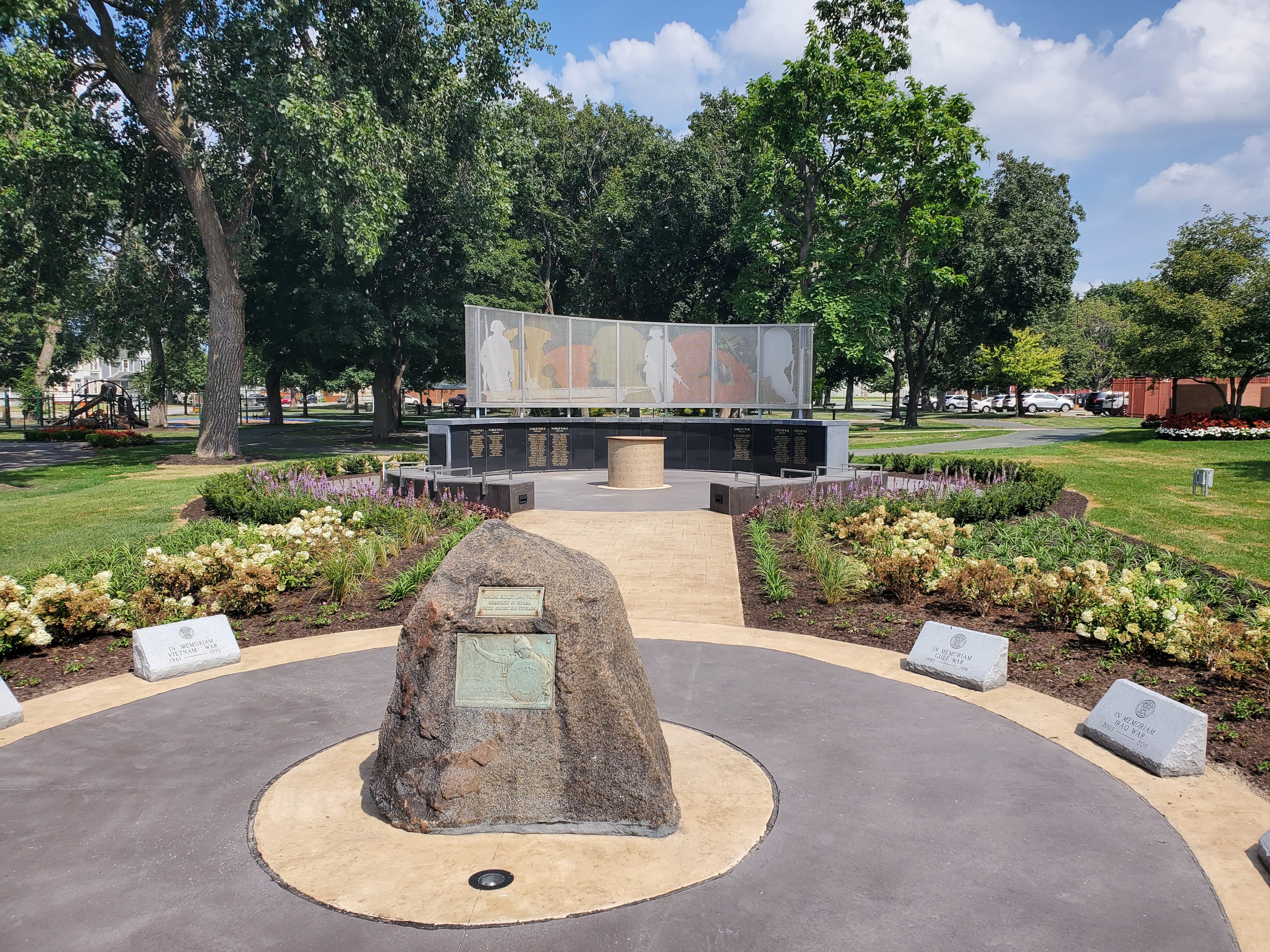 The City of East Chicago's Veterans Park has just about everything a city park needs: a playground, basketball courts, a recreation center, and plenty of green space. It was only missing a veterans monument to complete a park dedicated to the city's veterans. The City of East Chicago worked with Raffin Construction as general contractor to complete a veterans monument in an unused green space.